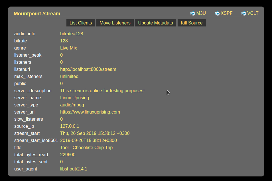 on the server info page of the icecast web interface